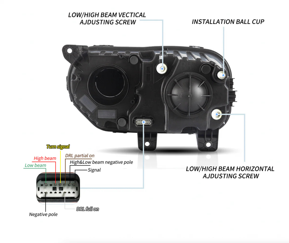 Not Fit For 2017-2021 Dodge Challenger With Stock Halogen Headlight (Pin (Male) 12 Position)